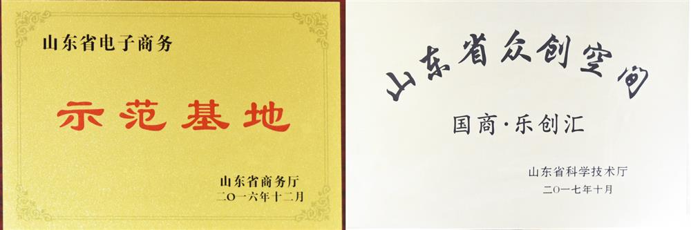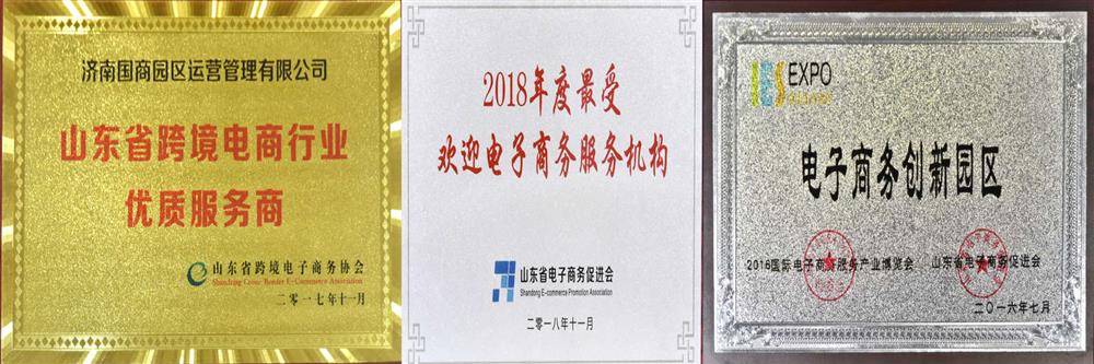山東省跨境電商行業(yè)優(yōu)質(zhì)服務(wù)商(山東省跨境電子商務(wù)協(xié)會(huì),2017)     2018年度最受歡迎電子商務(wù)服務(wù)機(jī)構(gòu)(山東省電子商務(wù)促進(jìn)會(huì),2018)     電子商務(wù)創(chuàng)新園區(qū)("國(guó)際電子商務(wù)服務(wù)產(chǎn)業(yè)博覽會(huì)山東省電子商務(wù)促進(jìn)會(huì)",2016)     山東省電子商務(wù)示范基地(山東省商務(wù)廳,2016)     山東省眾創(chuàng)空間(山東省科學(xué)技術(shù)廳,2017)