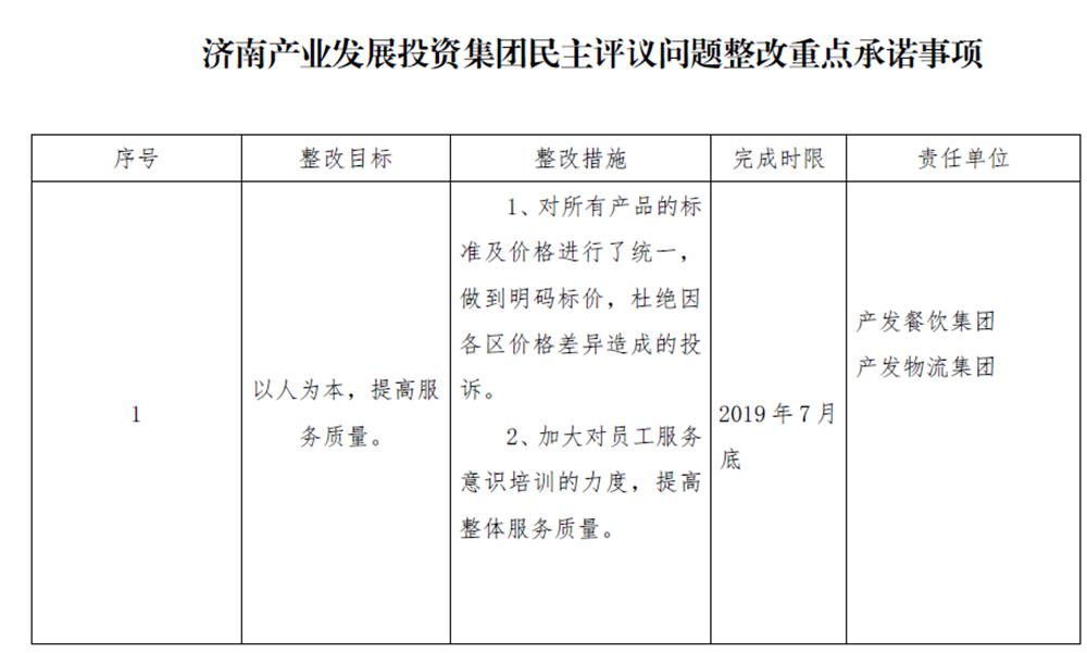 濟南產(chǎn)業(yè)發(fā)展投資集團民主評議問題整改重點承諾事項
