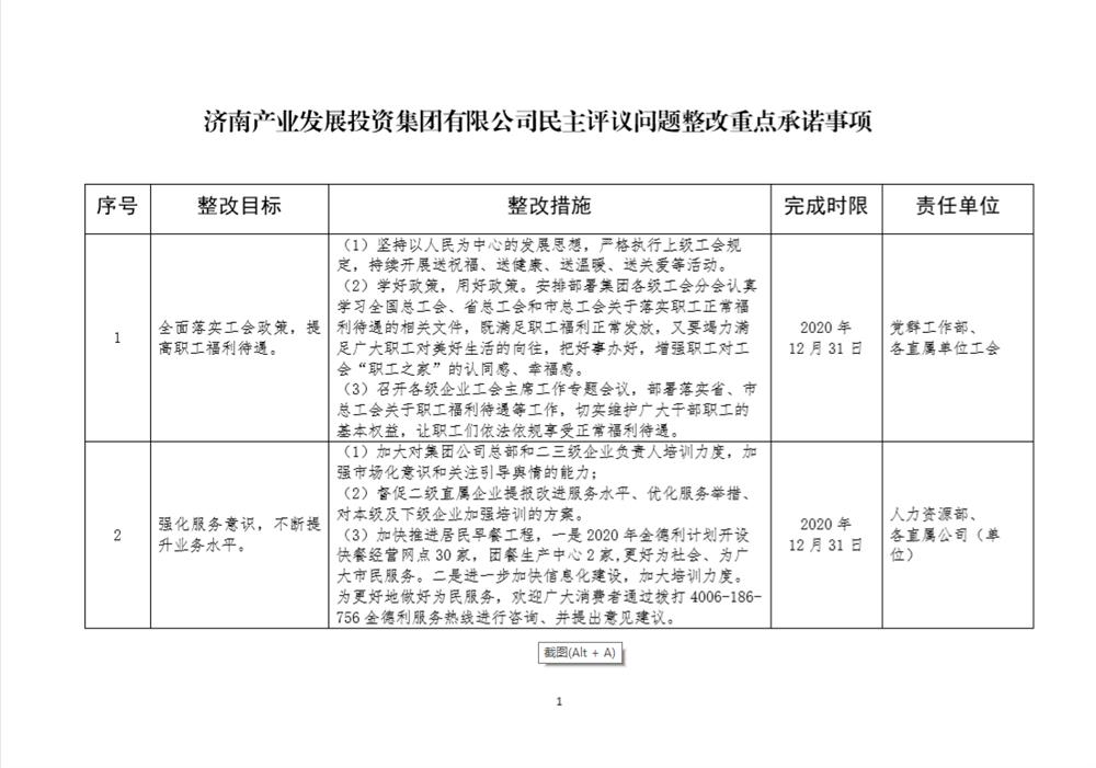 產(chǎn)發(fā)集團(tuán)民主評議問題整改重點承諾事項